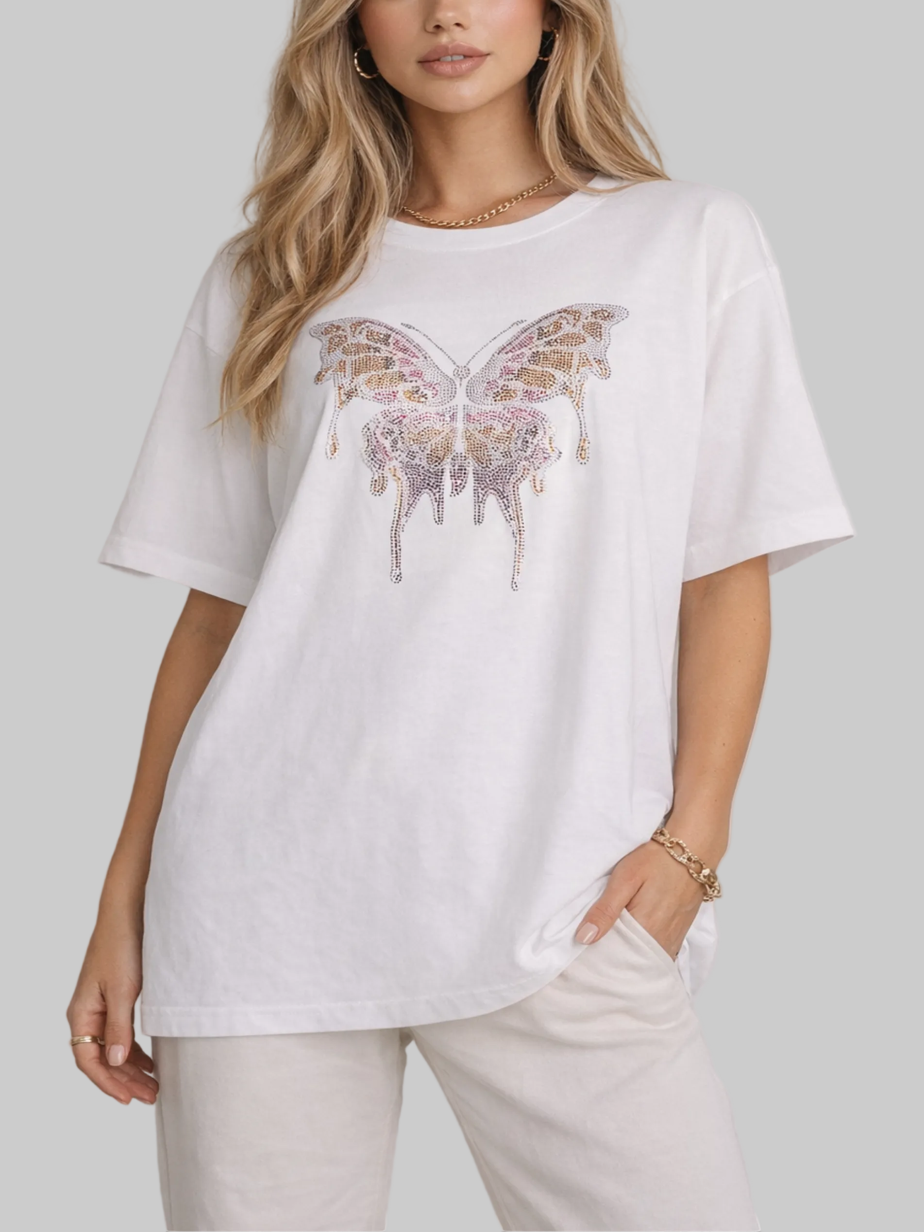 Crystal Drip Butterfly Oversized Tee